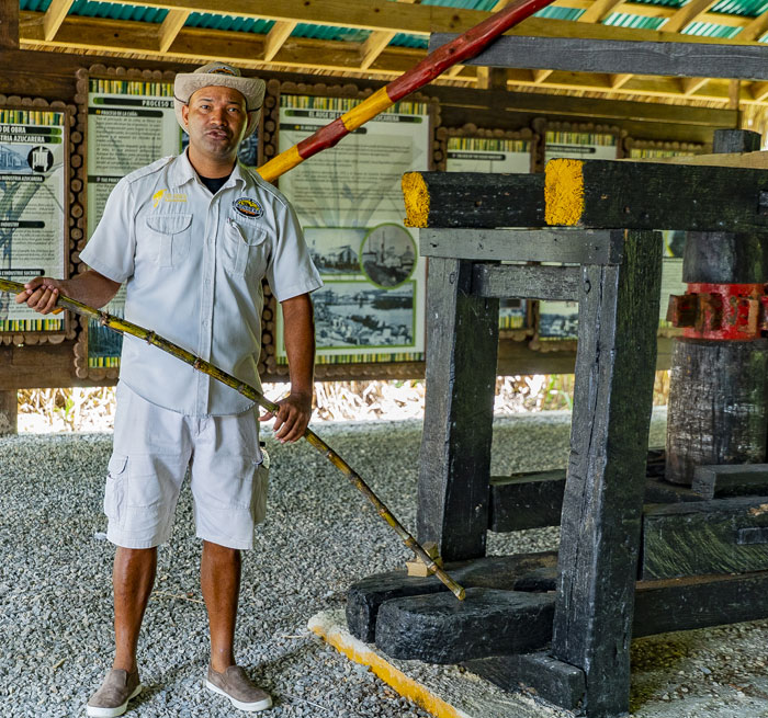 Fahren Sie durch eine Zuckerrohrplantage. Erleben Sie die traditionelle Art und Weise, wie die Ureinwohner diese Ernte pflügten. Gehen Sie in eine handwerklich hergestellte Zuckerrohrmühle und sehen Sie sich eine originalgetreue Nachstellung einer Trapiche (Radmühle) aus der Kolonialzeit an, die von Ochsen gezogen wird. Damals war es die einzige Möglichkeit, den Zuckerrohrsaft zu gewinnen, ein zuckerhaltiges Elixier, das Sie probieren werden. Sehen Sie, wie sich diese Ernte vor Ihren Augen verwandelt, von Zuckerrohrsaft zu Melasse und Vinasse, bis sie zum feinsten dominikanischen Rum wird.