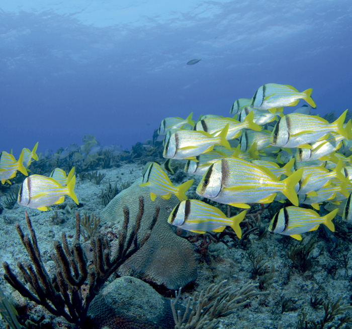 se encuentran los peces tropicales, rayas y el arrecife de coral.