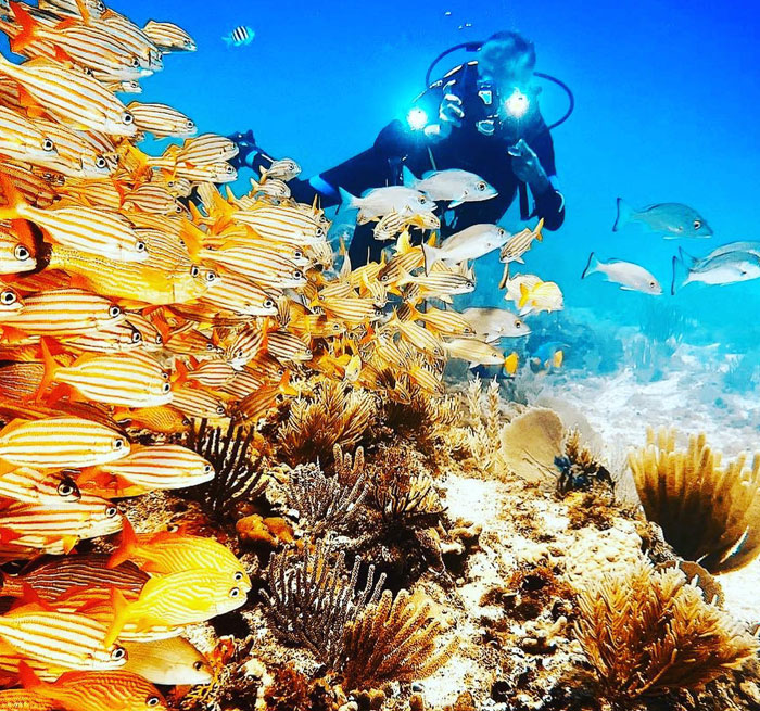 2 inmersiones en arrecife para buzos con certificación Open Water (OW). Regreso al Dive Club alrededor de las 12:00 PM.