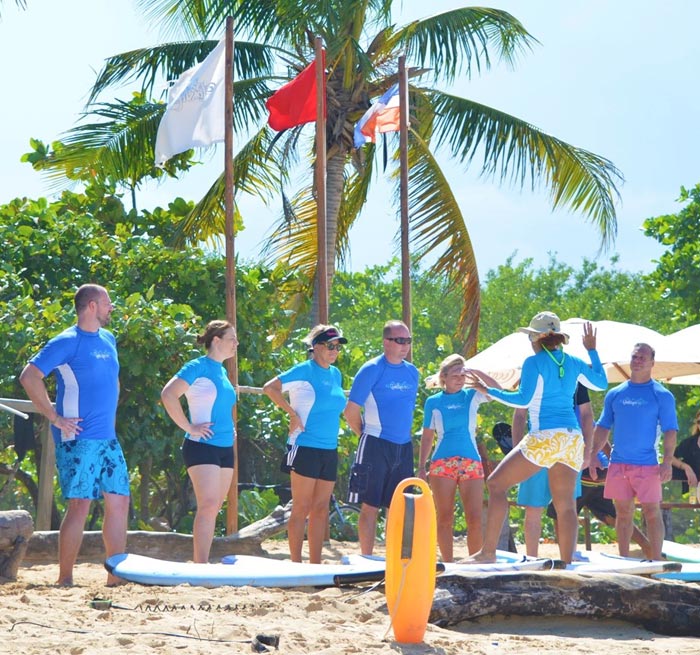 Transporte desde y hacia el hotel - equipos (tablas, leash, cera) - Lección técnica en la playa - dos sesiones de una hora cada uno, instrucción práctica en el agua con instructor personal - Rash guard para protección del sol - refrigerios e hidratación