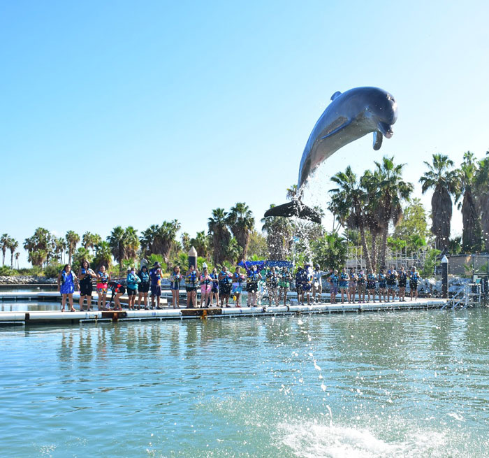 Nuestro objetivo es enseñar todo lo que sabemos sobre estos increíbles animales marinos y que lo pases bien. La interacción con los delfines se puede disfrutar desde una plataforma en el agua. El programa incluye un apretón de manos, un beso en la mejilla y una canción especial para ti. El delfín también te deleitará con sus habilidades lúdicas.