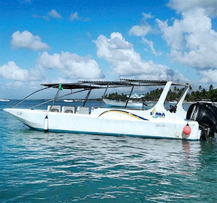 subirá a la lancha motora para un emocionante viaje a la isla Saona.