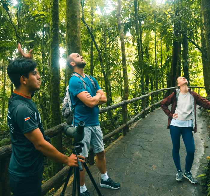 Tu aventura comienza con la recogida en tu hotel por parte de nuestros guías naturalistas bilingües, quienes te llevarán a uno de los mejores miradores del Volcán Arenal. A medida que avanzas por los senderos, cruzarás 15 puentes, incluidos seis puentes colgantes, cada uno ofreciendo vistas panorámicas del volcán y sus alrededores. Durante esta experiencia de 2,5 horas (aproximadamente 3 kilómetros), podrás observar coloridas aves, plantas exóticas y vida silvestre. Los senderos están diseñados para todo tipo de visitantes, garantizando una exploración segura y placentera de la selva tropical.
