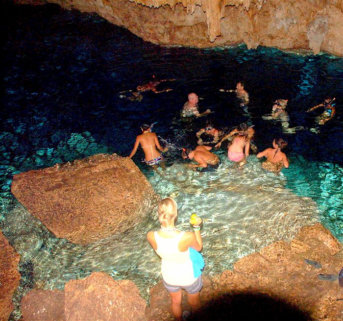 Emoción: Nadar en la cueva en aguas cristalinas...