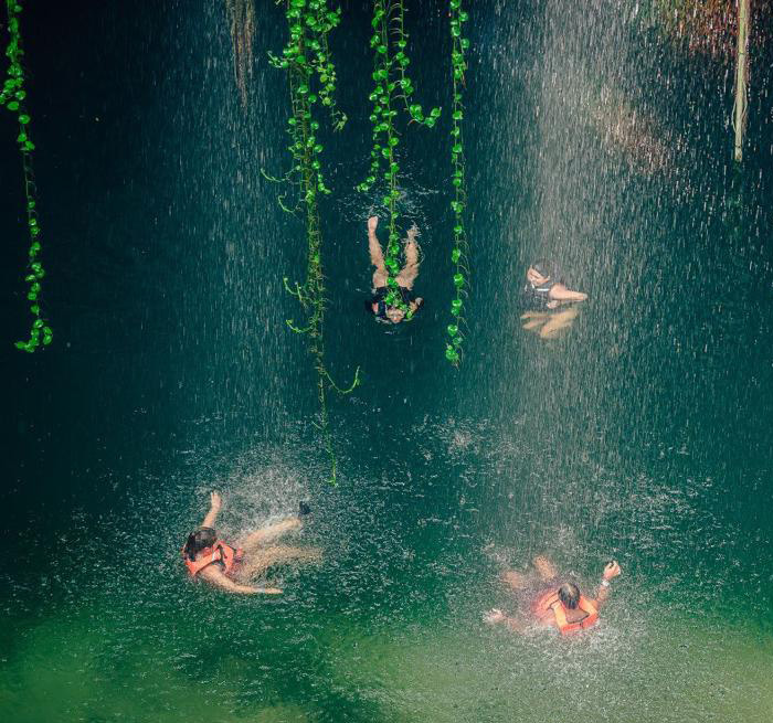 Una vez que terminamos la visita, es momento de refrescarse en un increíble cenote de agua dulce y disfrutar de un delicioso buffet de comida típica regional.